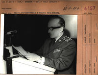 Slávnostné premenovanie VPF na VPA KG – Vojenskú politickú akadémiu Klementa Gottwalda v Bratislave. Na obrázku podávanie hlásenia náčelníka VPA KG gen.mjr. Reindla predsedovi vlády SSR prof. Colotkovi (2. sprava). 1. sprava je minister národnej obrany M. Dzúr.