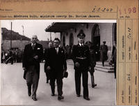 Príchod delegácie Ustaše na Slovensko. Na obr. zapovjednik Ustaše Božidar Karvan v sprievode župného inšpektora HG Dr. Jozefáta Královiča pred bratislavskou stanicou.
