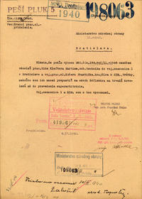 Brnčal Albert, voj. - premiestnenie, hlásenie.