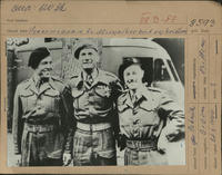 Vyznamenanie dôstojníkov čs. samostatnej obrnenej brigády za úspechy v útoku na Dunkerque v rámci invázie spojeneckých armád. Vľavo je kpt. Sedláček, v strede škpt. A. Petrák.