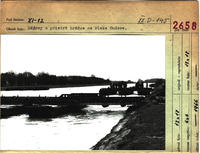 Záplavy a prietrž hrádze na rieke Ondave. Na obrázku príslušníci ženijných jednotiek čs. armády pri montáži pontónového mosta, ktorý umožní nákladným autám dostať sa až k prietrži.