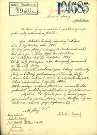 Michal Vaňo - žiadosť o prijatie do služieb ,,Let. skladu v Nitre" ako let. mechanik.
