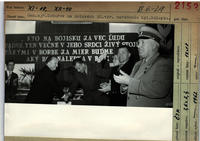 Plenárne zasadnutie SV Zväzarmu k 10. výročiu trvania. Na obrázku predseda SV. Zväzarmu generálmajor František Novek pri úvodnom prejave.