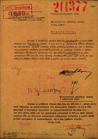 Žiadosť o zrušenie výn. MNO čís. 22.984 / Dôv. 1. osob. 1939.