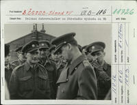 Štátny minister a zástupca ministra obrany čs. exilovej vlády generál Rudolf Viest /v popredí/ na privítaní čs. dobrovoľníkov, ktorí prišli do Veľkej Británie zo Stredného východu.