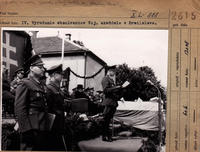 IV. vyradenie absolventov Vojenskej akadémie v Bratislave. Na obr. prezident republiky Dr. Jozef Tiso si prezerá zbrane slovenskej armády.