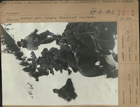 SNP - Prechod partizánskej brigády "Pomstiteľ" cez front. Na obr. v Liptovskej Lúžnej 20.3.1945. Na voze sediaca Magdalena Nová, ošetrovateľka v poľnej nemocnici.