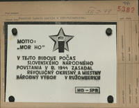 Banská Bystrica, kraj Stredoslovenský, okr. Banská Bystrica, nám. ČA 14. Pamätná budova, v ktorej v SNP sídlilo Povereníctvo SNR pre zdravotníctvo, ozn. textovou, mramorovou tabuľou. Text: V tejto budove za Slovenského národného povstania roku 1944 sídlilo Povereníctvo Slovenskej národnej rady pre zdravotníctvo. Venované pri oslave tretieho výročia povstania.