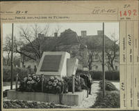 HANUŠOVCE, okr. Vranov nad Topľou. Pamätná tabuľa hrdinom sov. armády na budove kaštieľa, odhalená z príležitosti 25. výročia oslobodenia v r. 1970, autorom je Lefner.