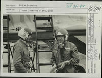 Letový deň na 31. leteckej základni Sliač v marci 1995. Veliteľ 3. zboru letectva a protivzdušnej obrany plukovník Ing. Jozef Pivarči /vpravo/ a pplk. Jozef Dunaj /vľavo/ pred nástupom do stíhacieho lietadla MiG-29.