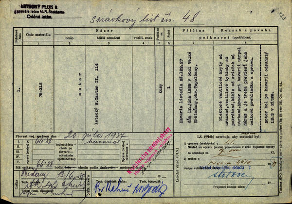 Havária lietadla Bš 122.27 s motorom W. Castor II. 114 - adm. prejednanie. (103597)