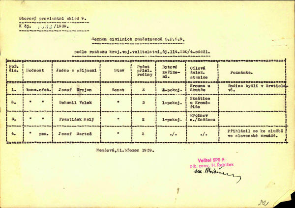 Voj. gažisti a civ. zamestnanci - odsun do historických zemí - zoznam. (200404)