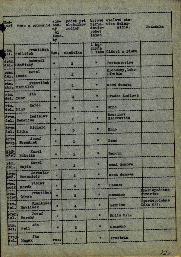 Voj. gažisti a civ. zamestnanci - odsun do historických zemí - zoznam. (200404)