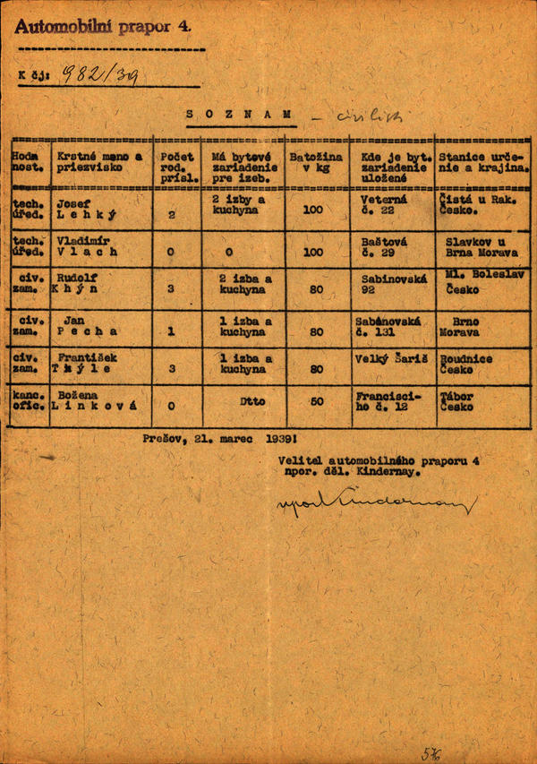 Voj. gažisti a civ. zamestnanci - odsun do historických zemí - zoznam. (200404)
