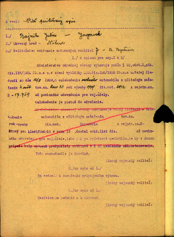 Bajzik Július - žiadosť o oslobodenie mot. vozidla. (109913)