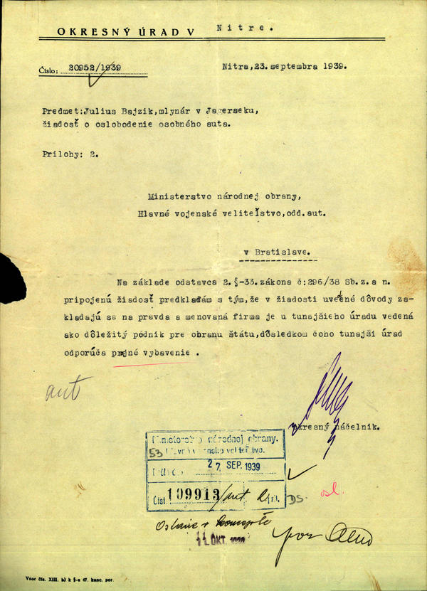 Bajzik Július - žiadosť o oslobodenie mot. vozidla. (109913)
