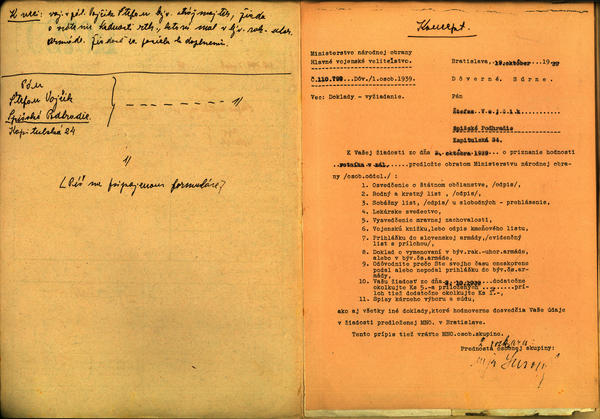 Štefan Vojčik, voj. v zál. býv. strážmajster - žiadosť o priznanie hodnosti rtk. v zál. (110799)