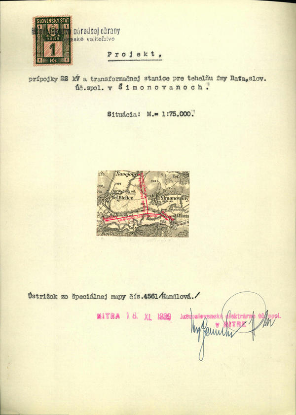 Južnoslovenské elektrárne úč. spol. v Nitre - stavba elektrického zariadenia pre firmu ,,Baťa" v Šimonovanoch. (192132)