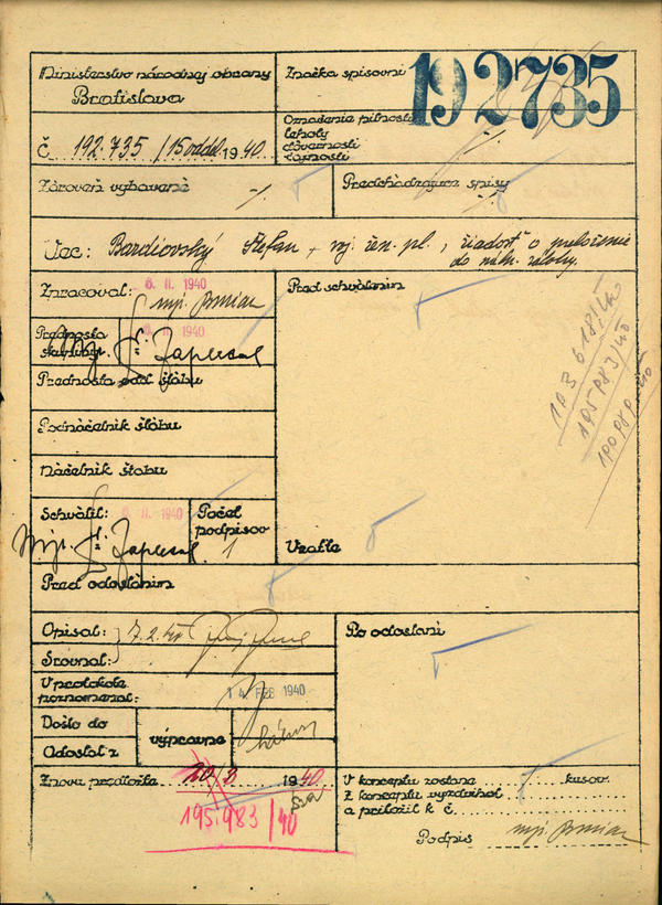 Bardiovský Štefan, voj. žen. pl. - žiadosť o preloženie do náhr. zálohy. (192735)