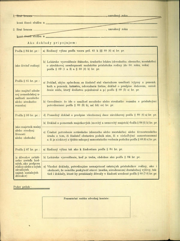 Branci voj. služby odv. roč. 1939 - dodatočné preradenie do pracovnej služby. (198439)