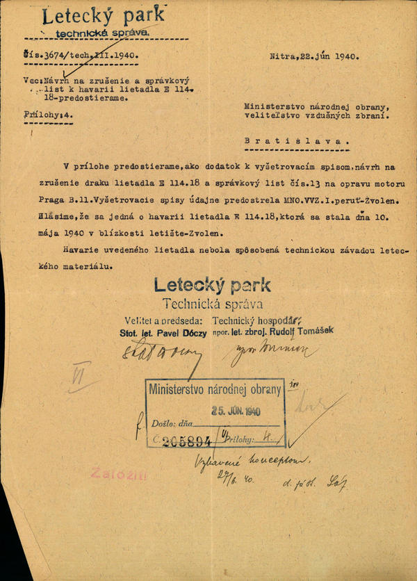 Havária lietadla E.114.18 - prejednanie. (205894)