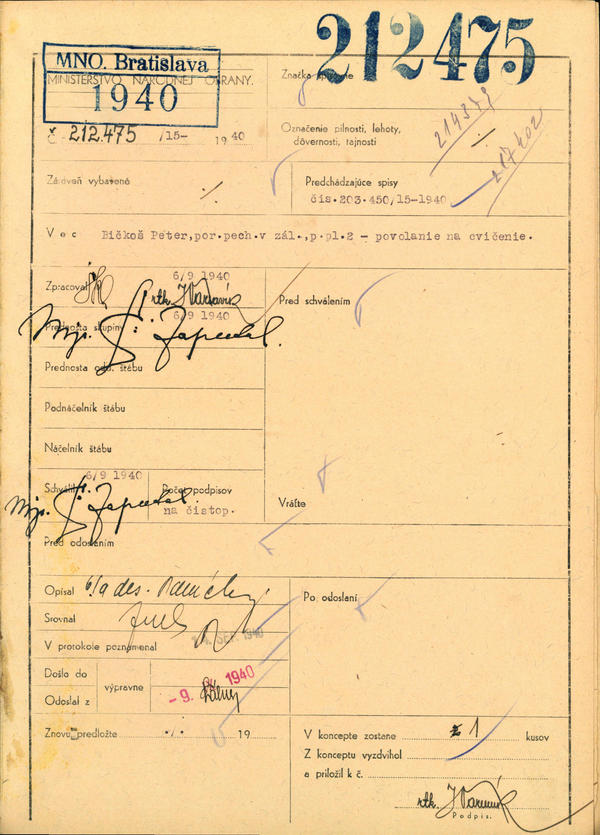 Bičkoš Peter, por. pech. v zál., p. pl. 2 - povolanie na cvičenie. (212475)