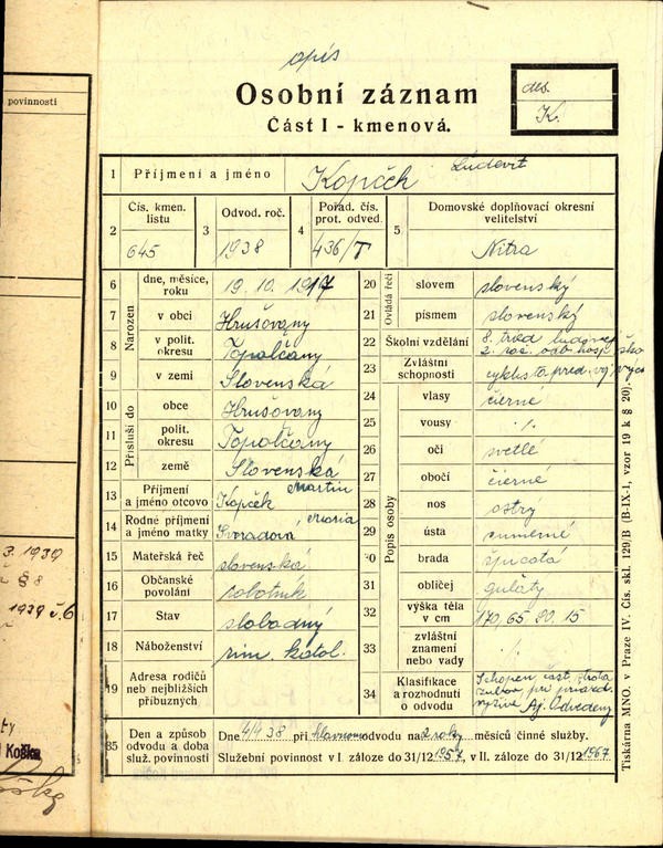 Ľudovít Kopček, des. voj. sl. - žiadosť o prijatie do let. skladov v Nitre ako pom. robotník. (215316)