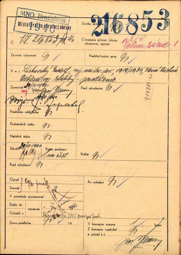 Lieskovský Rudolf, voj. na trv. dov., 1919/1939 - odklad voj. služby, predĺženie. (216853)