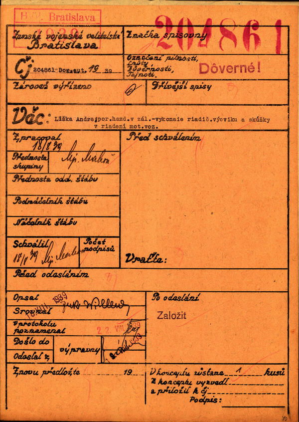 Liška Andrej, por.jazd. v zál. - vykonanie riadič. výcviku a skúšky v riadení mot. voz. (204861)