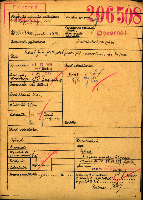 Sekáč Ján, JUDr., stot.just. v zál. - povolanie do Prešova. (206508)