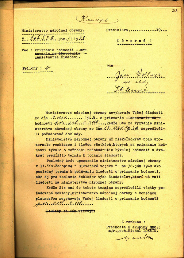 Wollner Ján, voj. v zál. - žiadosť o priznanie hodnosti por.pech. v zál. (206539)