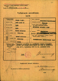 Oslobodenie od vojenskej činnej služby za mobilizácie. Zoznam vyčkávacích osvedčení. (207078)