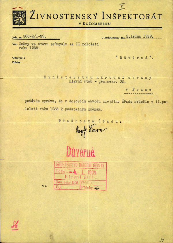Hlásenie zmien v stave priemyslu v 2. polroku 1938 (200032)