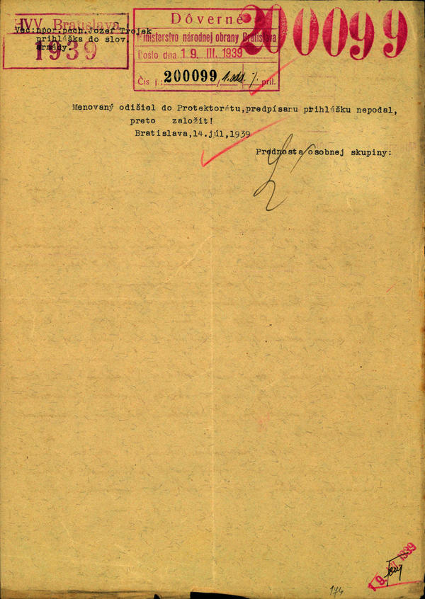 Trojek Jozef- neuspešná žiadosť o prijatie do slovenskej armády (200099)