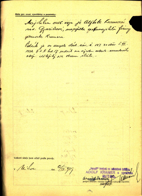 Firma FERRENIT, továreň na azbestocementovú bridlicu v Nitre A. Kramer a synovia - žiadosť o oslobodenie mot. vozidiel. (207861)