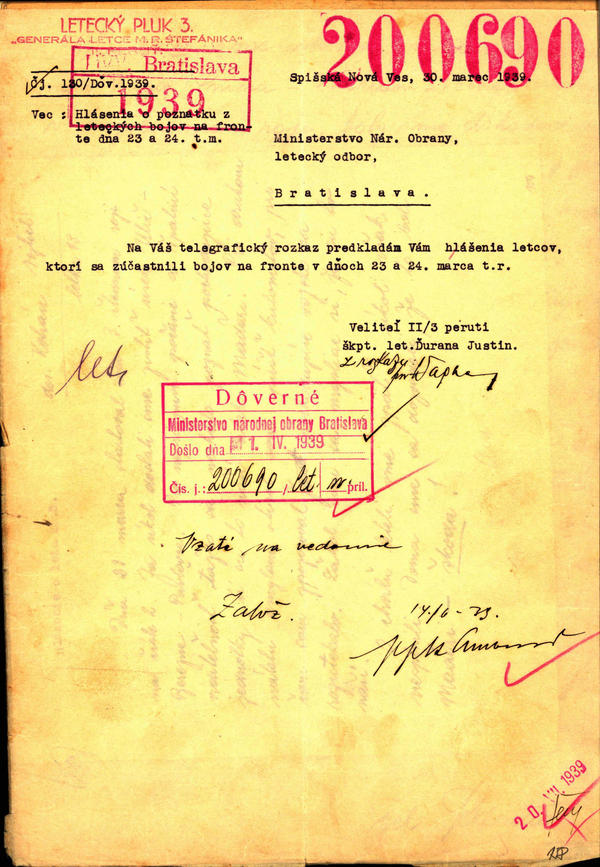 Hlásenia letcov, ktorí sa zúčastnili bojov na fronte v dňoch 23. a 24. marca. (200690)