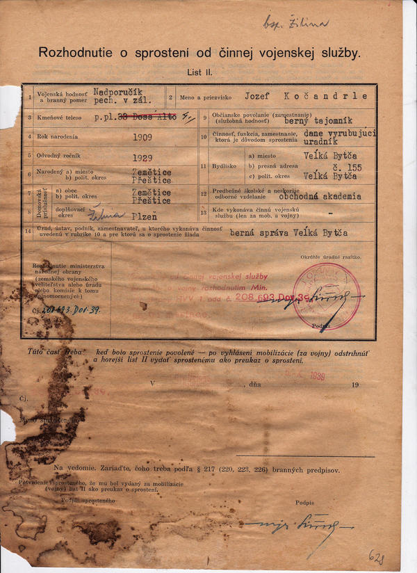 Sprostenie od činnej služby za mobilizácie a vo vojne. (208693)