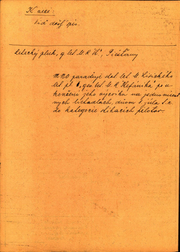 Lisický Mikuláš, stot. let. - zaradenie do skupiny stíhacích pilotov. (202487)