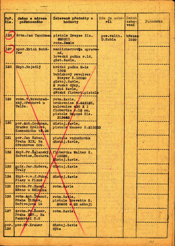 Gážisti českej národnosti - opatrenie. Súpis zbraní odovzdaných gážistami českej národnosti. (200086)